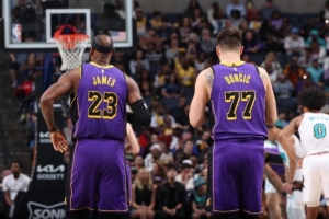 常規(guī)賽開始前,主帥雷迪克延續(xù)了以安東尼·戴維斯內(nèi)線強攻為核心、為詹姆斯減負(fù)的戰(zhàn)術(shù)思路。然而安東尼·戴維斯耐操屬性不足,而且隨著對手針對湖人的技戰(zhàn)術(shù)打法研究逐漸深入,湖人戰(zhàn)績一直不溫不火。賽季的轉(zhuǎn)折點出現(xiàn)在安東尼·戴維斯和東契奇互換東家,湖人進(jìn)一步確定了斯洛文尼亞人作為持球大核的戰(zhàn)術(shù)主導(dǎo)權(quán),這也標(biāo)志著湖人正式開啟后詹姆斯時代的戰(zhàn)術(shù)轉(zhuǎn)型。東契奇加盟前,湖人戰(zhàn)績28勝19負(fù)。加盟后,湖人戰(zhàn)績22勝13負(fù),其中東契奇代表湖人出戰(zhàn)28場,湖人戰(zhàn)績18勝10負(fù)。