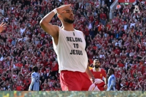 進(jìn)球后的加克波激動(dòng)脫掉上衣慶祝,露出打底T恤,T恤上英文:I BELONG TO JESUS。這一幕令人似曾相識,曾經(jīng)的米蘭王子卡卡也有相同款式的T恤。