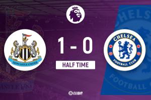 上半場(chǎng)補(bǔ)時(shí)6分鐘。半場(chǎng)戰(zhàn)罷,紐卡斯?fàn)?-0切爾西。
