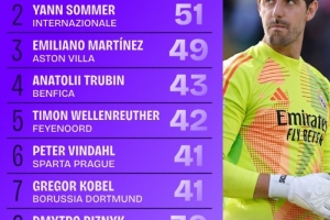 體育資訊6月2日訊 2024-25賽季的歐冠已經(jīng)落下帷幕,巴黎圣日耳曼以5-0的比分大勝國米奪冠。Squawka統(tǒng)計(jì)出了歐冠多項(xiàng)數(shù)據(jù)排名情況,皇馬門將庫爾圖瓦以52次撲救位居撲救榜榜首。
