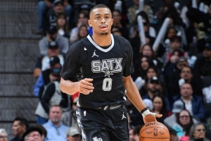 上半場(chǎng)比賽,馬刺球員凱爾登進(jìn)攻端持續(xù)攻擊籃筐,且一球不丟,他替補(bǔ)出戰(zhàn)13分鐘,5中4,三分1中0拿到8分4籃板2助攻,正負(fù)值-10。